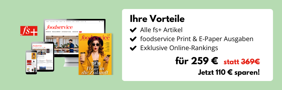 Sie lesen foodservice Print + Digital ein Jahr zum Sonderpreis von 259 € (Inland, inkl. Versand zzgl. MwSt.) anstatt 369 € und sparen dabei 110 €; weitere Länder auf Anfrage